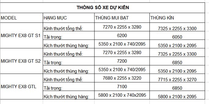 Hiện tại xe Hyundai Mighty EX8 GT đã có mặt tại đại lý Hyundai Miền Nam. Tự hào là đại lý ủy quyền cấp 1 của Hyundai Thành Công thương mại. Chúng tôi nhận gia công tất cả các loại thùng theo yêu cầu của khách hàng