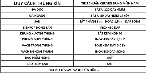 Thùng chuyên dùng: Thùng chở gia súc, thùng chở gia cầm. Thùng chở xe, thùng tự đổ, thùng lửng gắn cẩu